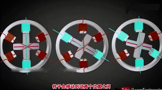 有六個定子齒部,三個分離的直流源進行驅動,轉動部分為轉子。