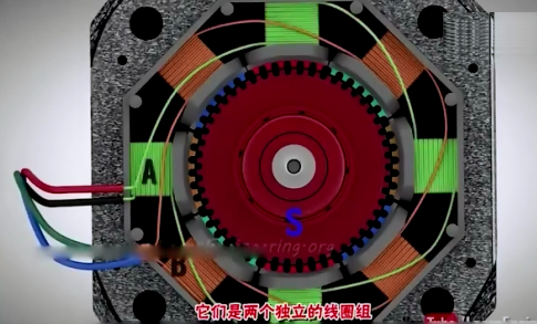 轉動的角度為1/4個齒,1個齒角度為360°/100=3.6°,則轉動腳為1.8°。下一次到A相線圈通電時,繼續轉動一個步進角1.8°,如此循環,步進電機受控轉動。同時,北極的轉子齒部排列與南極的剛好錯開,這樣就能保證兩邊都受控。