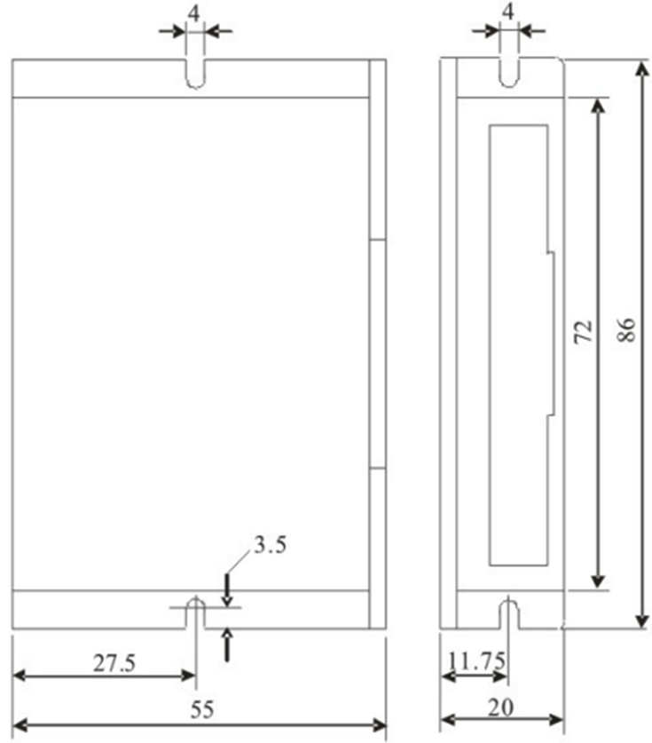 | DIR- | 方向控制信號:為保證電機可靠換向,方向信號應先于脈沖信號至少 5μs 建立。電機的初始運行方向與電機的接線有關,互換任一相繞組 (如A+、A-交換)可以改變電機初始運行的方向,DIR-高電平時4~5V,低電平時0~0.5V。如采用+12V 或+24V 時需串電阻。 |