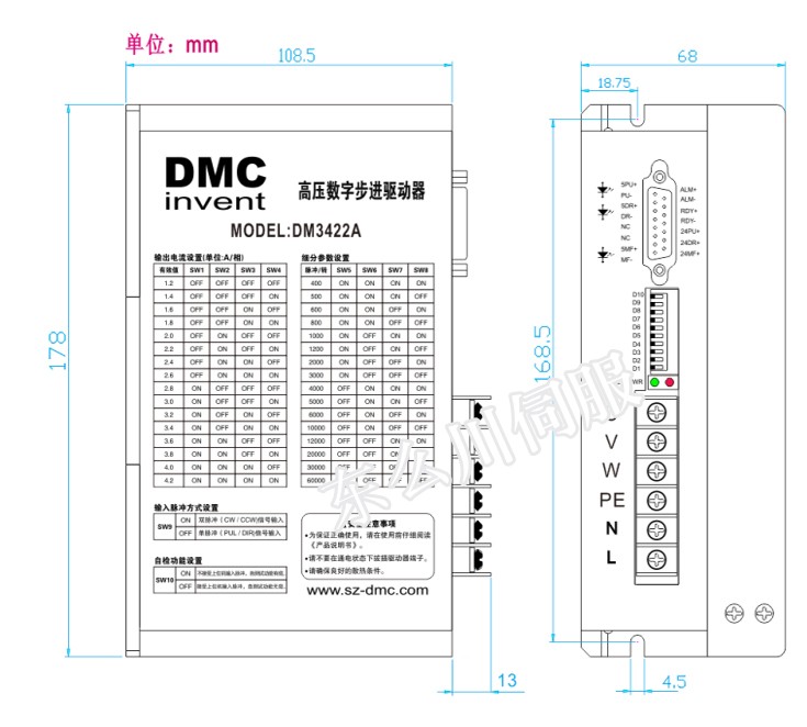 型號:三相高壓DM3422A 名稱:DM3422A三相步進驅動產品 型號32位DSP處理器 簡介:
