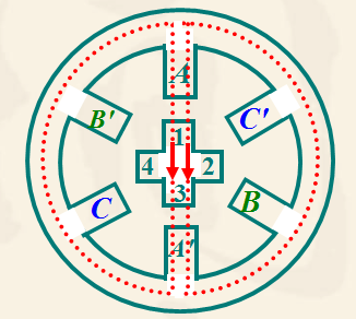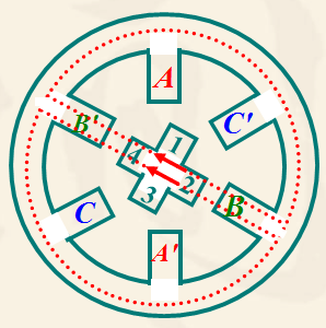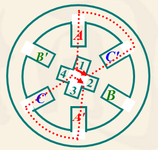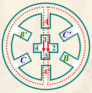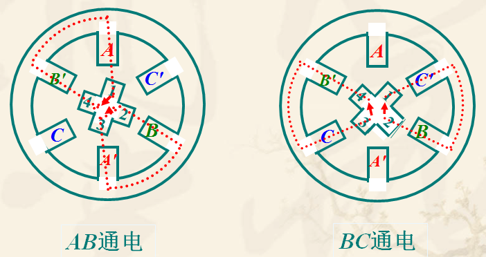 A 相通電使轉(zhuǎn)子1、3齒和 AA' 對齊。
