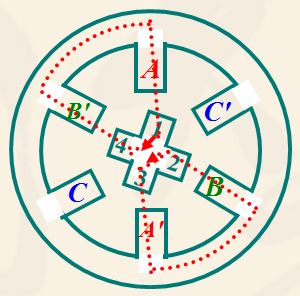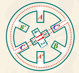 (1)BB' 磁場對 2、4 齒有磁拉力,該拉力使轉(zhuǎn)子順時針方向轉(zhuǎn)動。