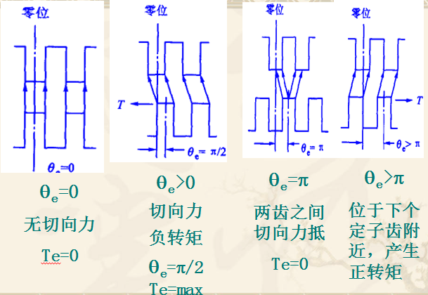 失調(diào)角——轉(zhuǎn)子偏離零位線的夾角qe,失調(diào)角是在齒距角范圍內(nèi)變化的,為了表示方便,將齒距角的范圍看成2p電角度。