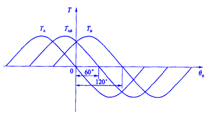 對(duì)于三相步進(jìn)電動(dòng)機(jī)來(lái)說(shuō),兩相通電時(shí)的最大轉(zhuǎn)矩與單相通電時(shí)的最大轉(zhuǎn)矩相同,也就是說(shuō),三相步進(jìn)電動(dòng)機(jī)不能靠增加通電相數(shù)來(lái)提高最大轉(zhuǎn)矩。